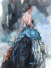 With her classic figurative forms, highly acclaimed artist Anna Razumovskaya magically captures the lyrical romanticism of renaissance portraiture, while creating art that is completely modern and original. Anna is inspired by the graceful elegance of the female form, at turns, classically alluring, demure and provocative. Her art has a pervasive sense of "romanticism," and the passionate and dynamic application of paint on the canvas and the artist's signature use of expressive colour, combine to create her uniquely recognizable style.